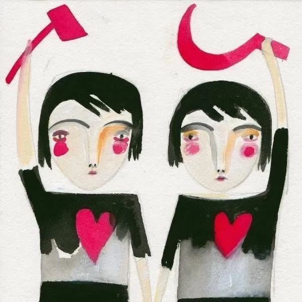 Answer the cheesy capitalist commodification of February 14 with greetings of love and solidarity in the revolutionary romantic spirit of Comrade Valentine (they, them)!