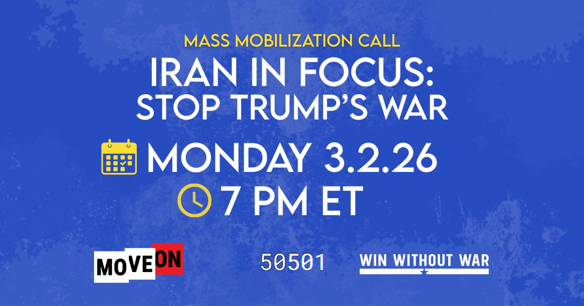Even if Trump ultimately vetoes such a measure, one or both chambers going on record against this war would change the political balance—raising the political cost for the administration, putting legislators on record opposing unauthorized war, and visibly broadening opposition across the political spectrum. In recent conflicts, war powers resolutions have acted as a brake on further escalation even when they have not passed, as a risk-averse and image-conscious Trump has pulled back from the threat of losing face, support, and votes. In this moment, every vote and every call can help save lives.
